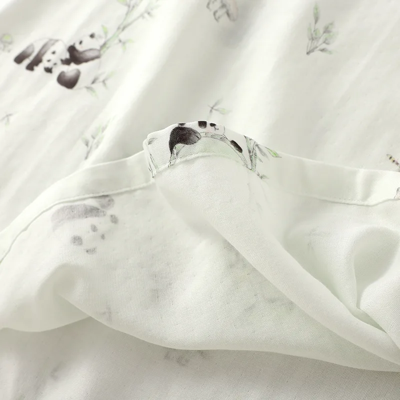 2025 Bamboo Cotton Gauze Pajamas Women's Chinese Retro Style Round Neck Loungewear Thin Nine-quarter Sleeve Loose Home Clothes