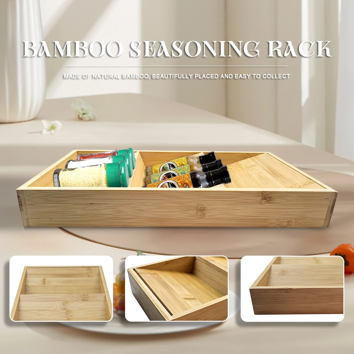 Bamboo Drawer Spice Rack,Countertop 3 Tier Storage Rack For Kitchen Counter,Shelves, Kitchen Organizer And Storage