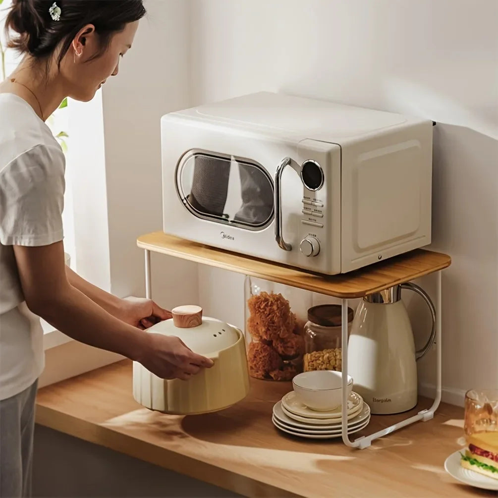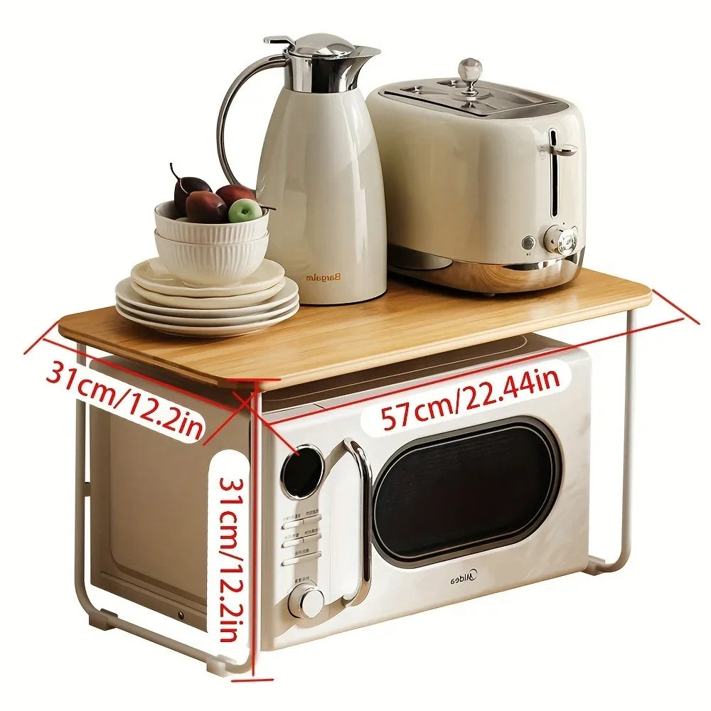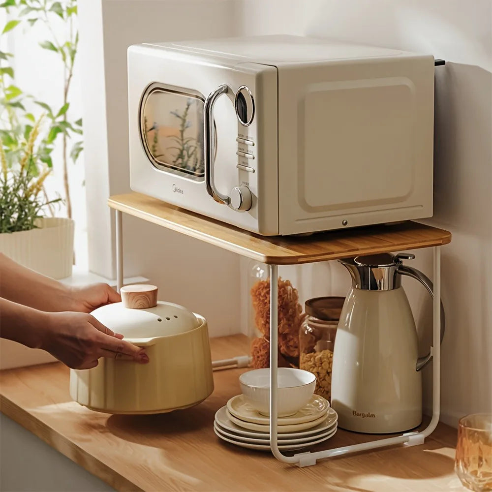 Bamboo Microwave Storage Rack Adjustable Kitchen Table Oven Cooker Organizer Shelf 1 Layer Household Desk Spice Condiment Holder