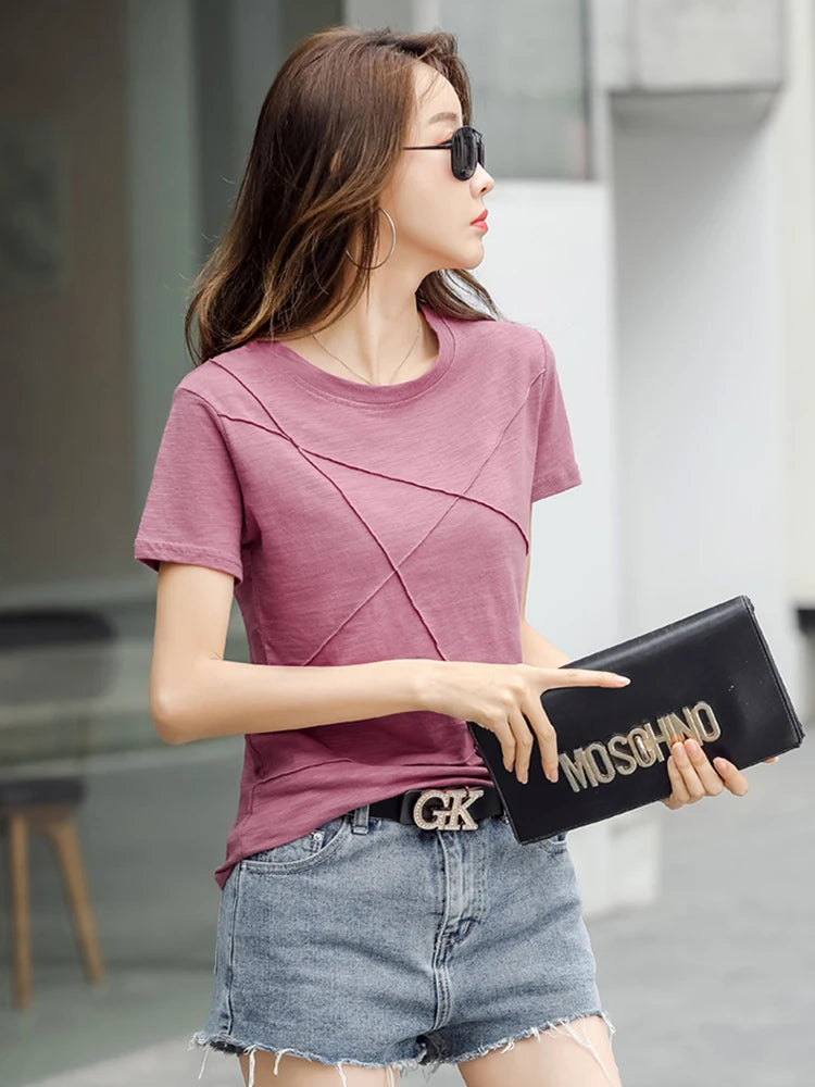 Fashion Spring Summer Slim Bamboo Cotton T-Shirts Women O-Neck Short Sleeve Korean Ribbed T Shirt Female Casual Solid Tops