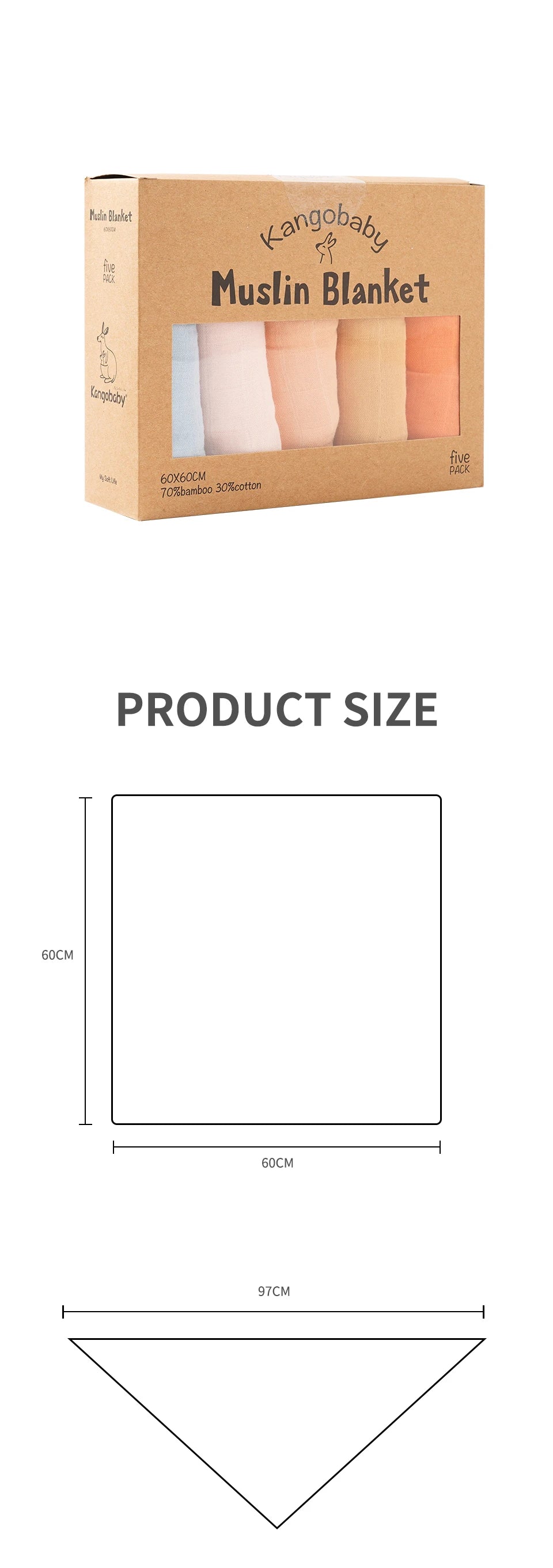 Kangobaby #My Soft Life# New 5pcs Pack Multi-Functional Bamboo Cotton Newborn Muslin Bib Antibacterial Baby Burp Cloth Set