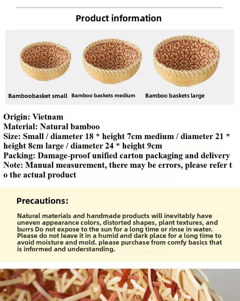 Exquisite craftsmanship: Carefully hand-woven by Vietnamese craftsmen, each rattan or bamboo strip is strictly screened, woven tightly and neatly, giving the product a unique texture and artistic sense, and each basket is unique.