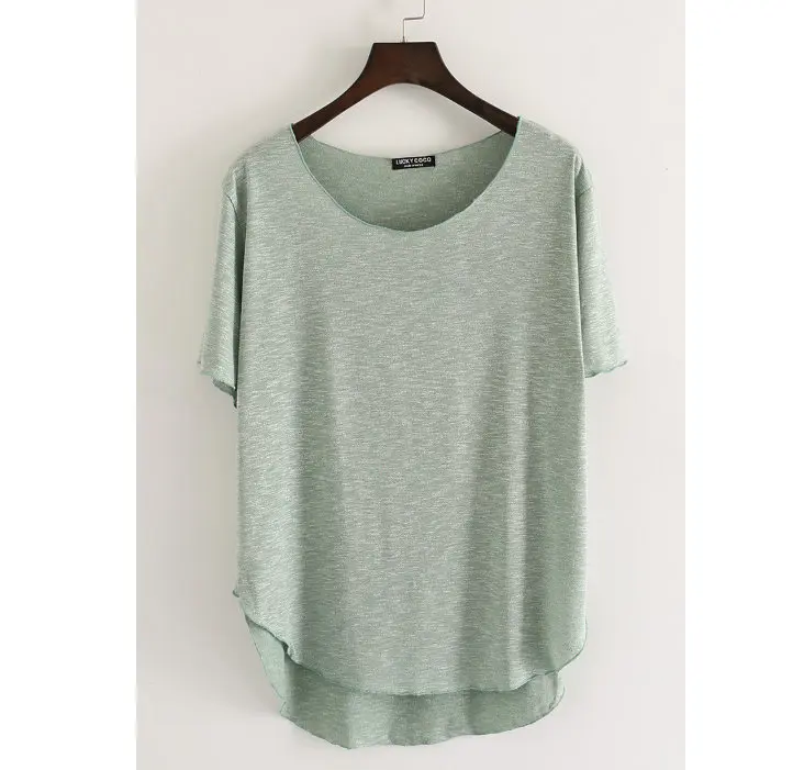 Women Bamboo T-shirt Round Neck Solid Color Summer Tshirt Girl Cooling Short-sleeved Floral Casual Ouc365a